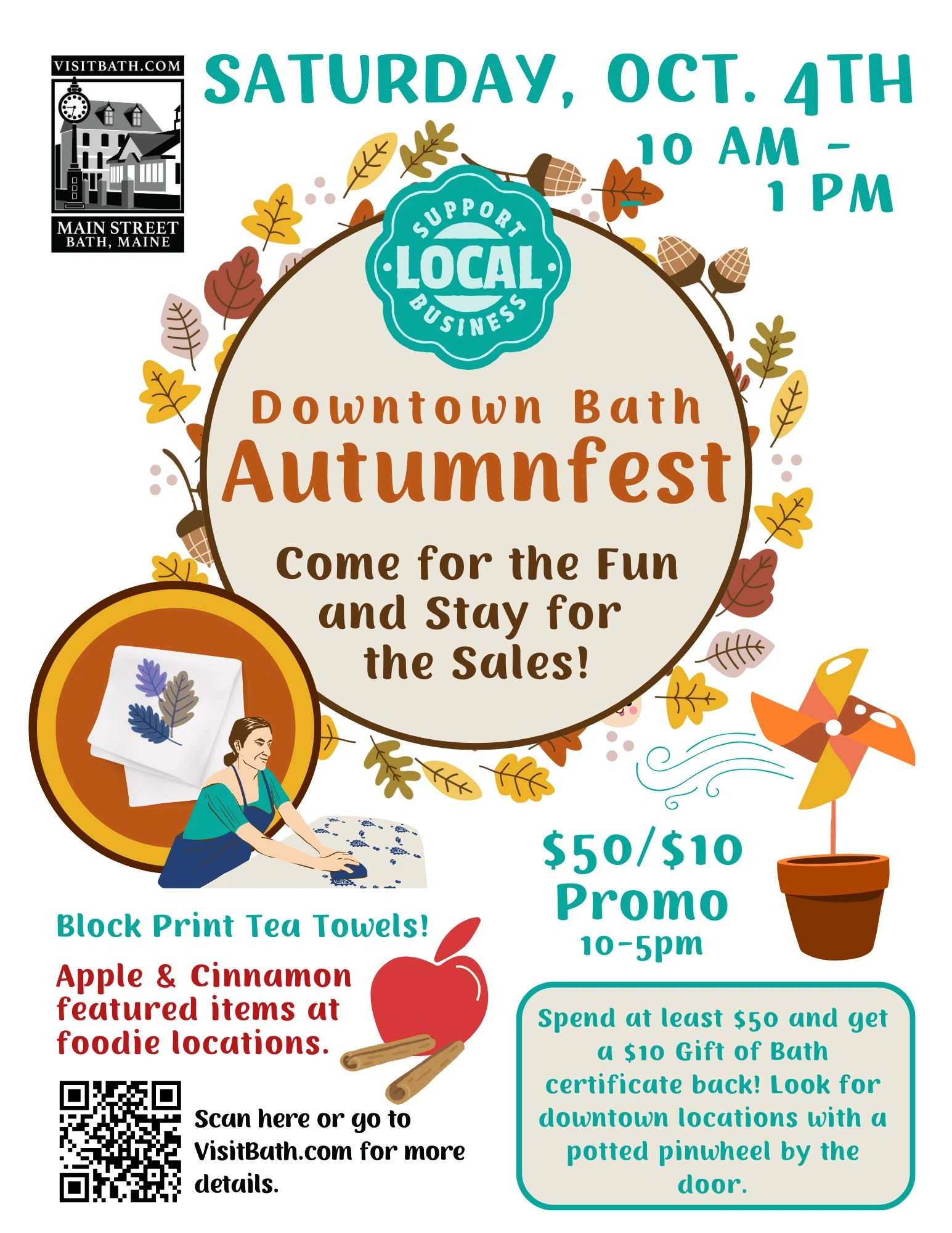 A printable PDF is available below, and physical copies will be available at the Main Street Bath Information Tent at Front & Center during Autumnfest.