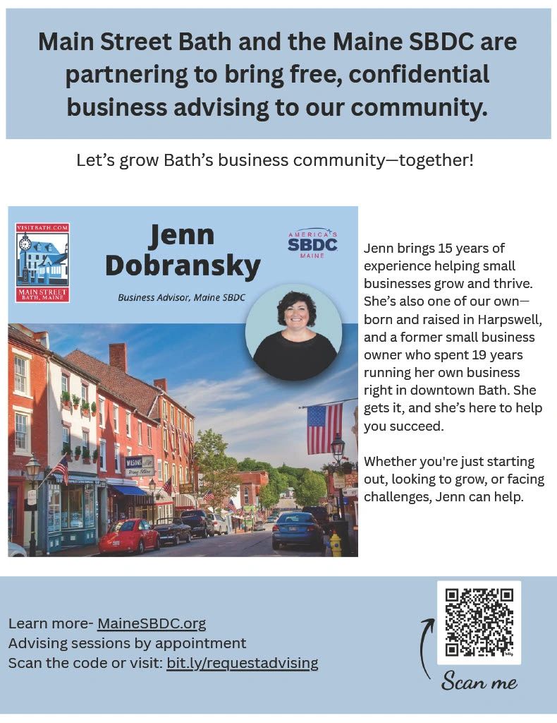 This partnership program (and others like it) is developed in Main Street Bath's Economic Vitality Committee, volunteer led, and held on the 3rd Thursday of each month at the Train Station. Join MSB and become a champion for ongoing small business support!